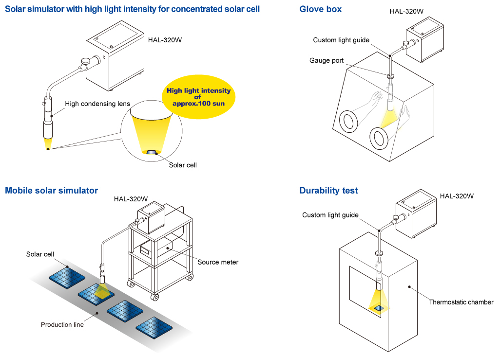 HAL-320W采用AM 1.5 g的實(shí)現(xiàn)了高度近似的太陽(yáng)光譜。設(shè)計(jì)緊湊,便于攜帶。
