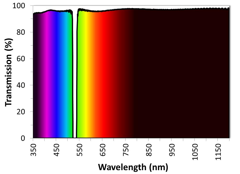 圖1.寬范圍傳輸陷波濾波器,用于**阻斷532 nm倍頻Nd:YAG激光器。